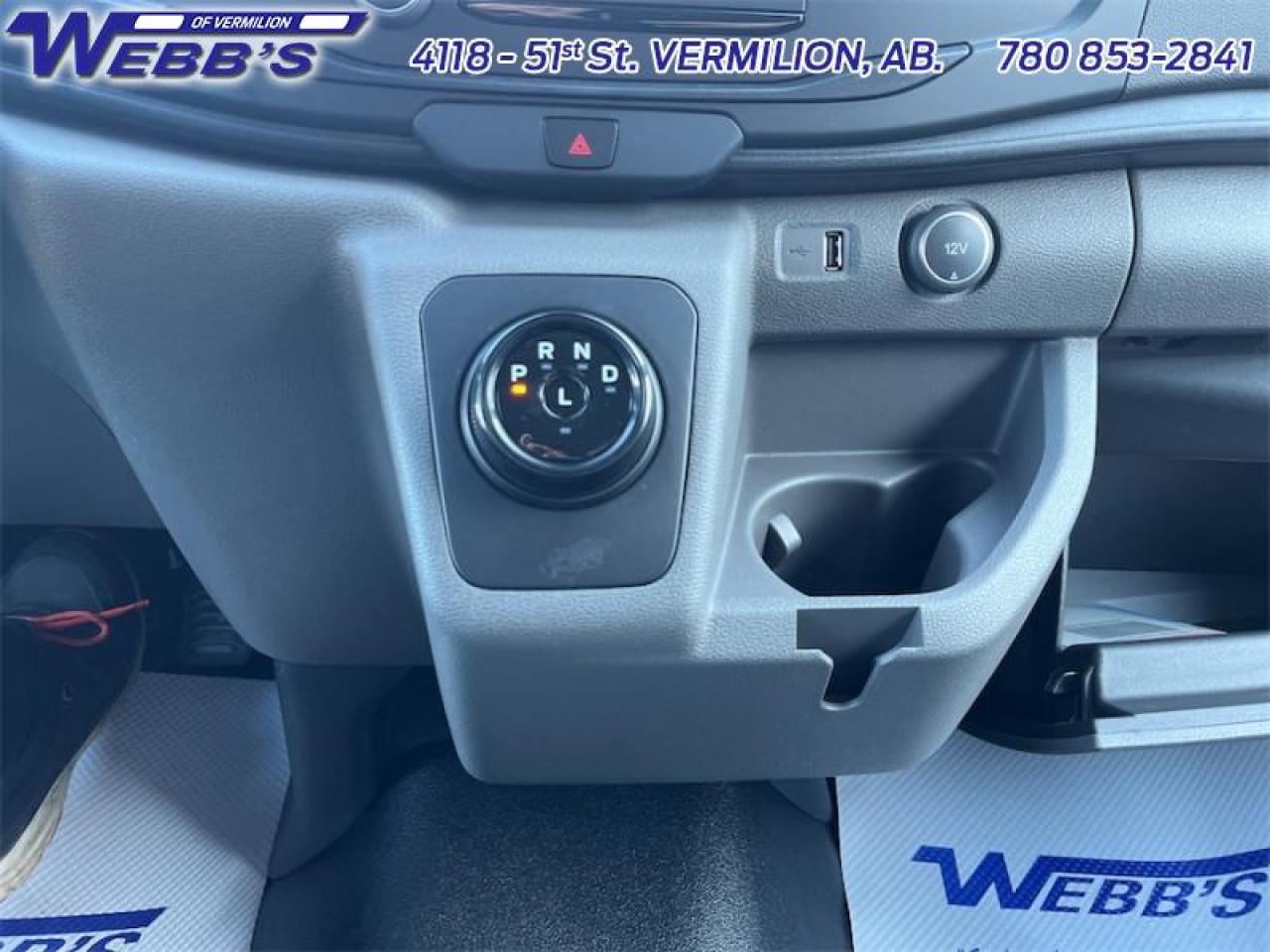 This oxford white van has a single speed transmission. This vehicle has been upgraded with the following features: Rear View Camera, Reverse Sensing System, Sync 4, Front Fog Lamps, Cruise Control.